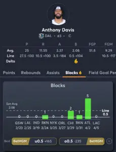 Prop Bet: Over 0.5 Blocks (+104, BetMGM)