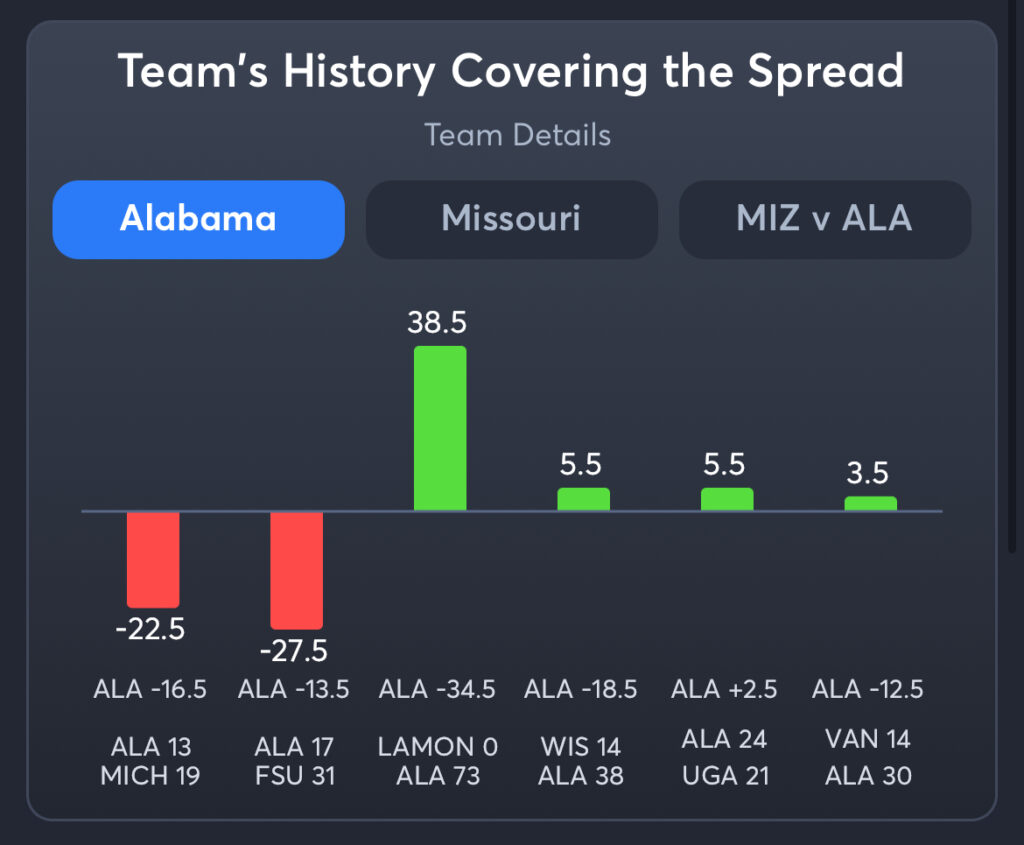 Now that you’ve got the best Predictions, Consensus Picks, and Best Odds for the Alabama vs Missouri, would you like more insights to help you bet smarter?