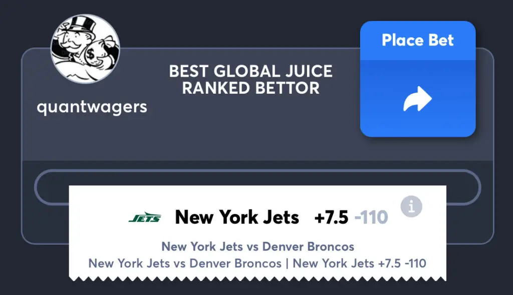 Both quantwagers & GreekOracle are betting on the Jets to cover +7.5 for the game.