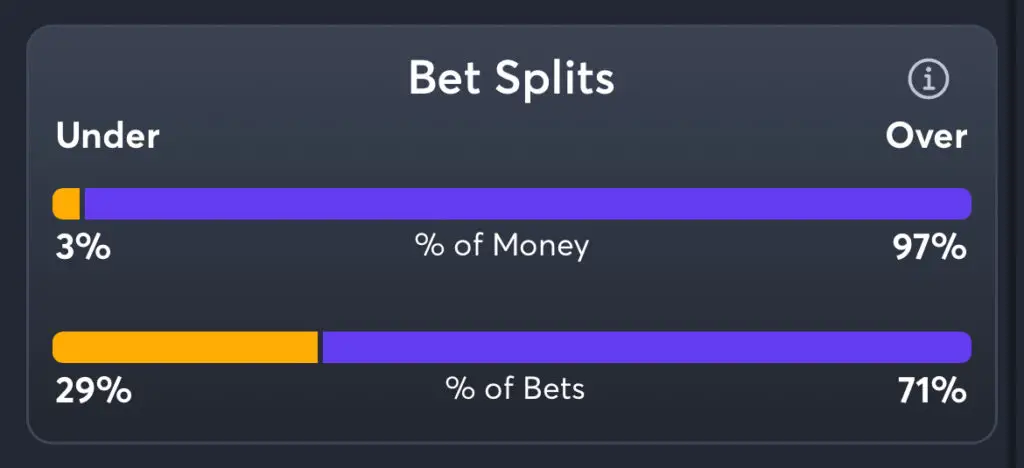 Get the best odds for the under with BetMGM as they are offering under 48.5 and over 48.0 with HardRock.