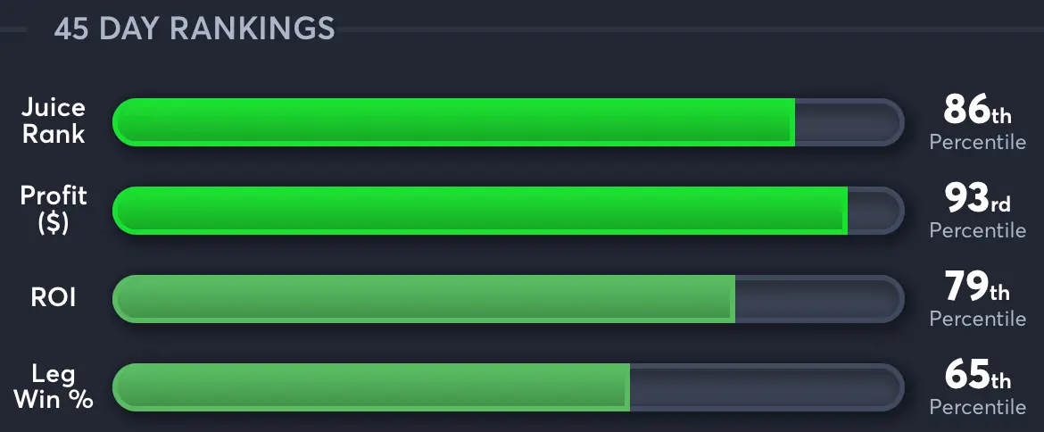 Here is where Robo Jackson stands in ranking in comparison to the rest of the Juice Reel betting community.
