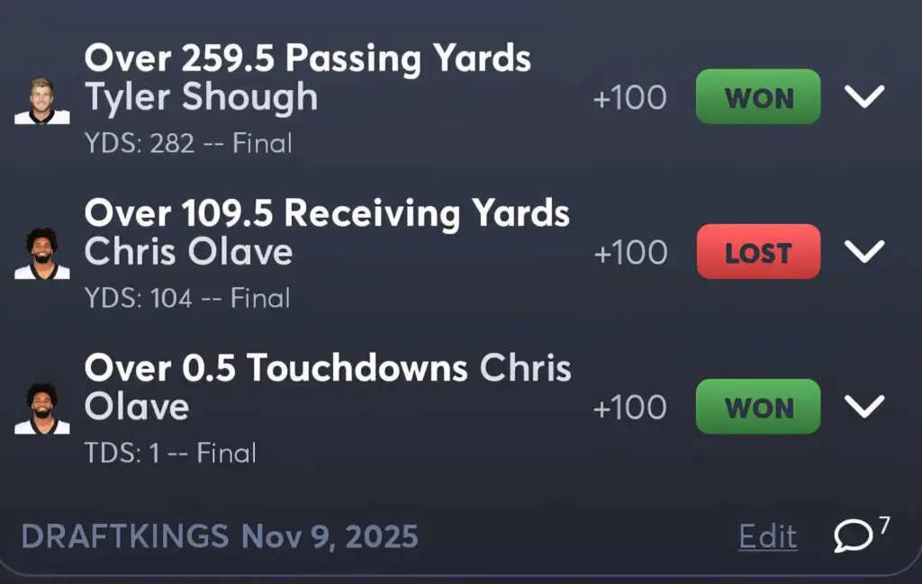 Last week I missed a 35:1 same game parlay by six Chris Olave receiving yards.