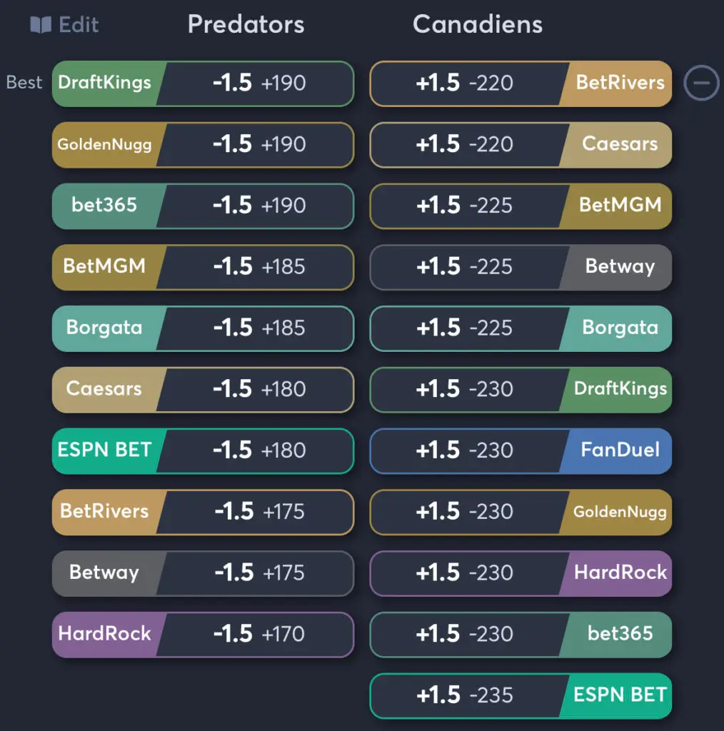 Get the best odds for the Nashville Predators vs Montreal Canadiens game today. With Juice Reel, your go-to sports betting tool for comprehensive betting insights, we dive into the best odds across 300+ sportsbooks to ensure you are getting the most value for your bets.