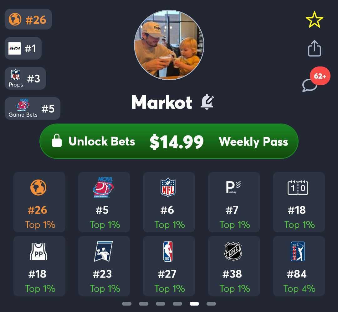 He’s risen to #26 on the Juice Reel platform, and is top five in both NFL props, and NCAA Basketball sides/totals.