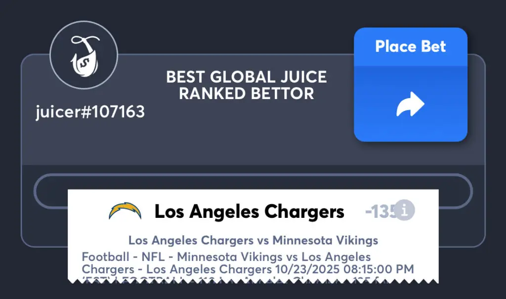 Juicer#107163 is betting on the Chargers to win outright for the game. While CheezeWhizX is also wagering on the Chargers to win outright.Â