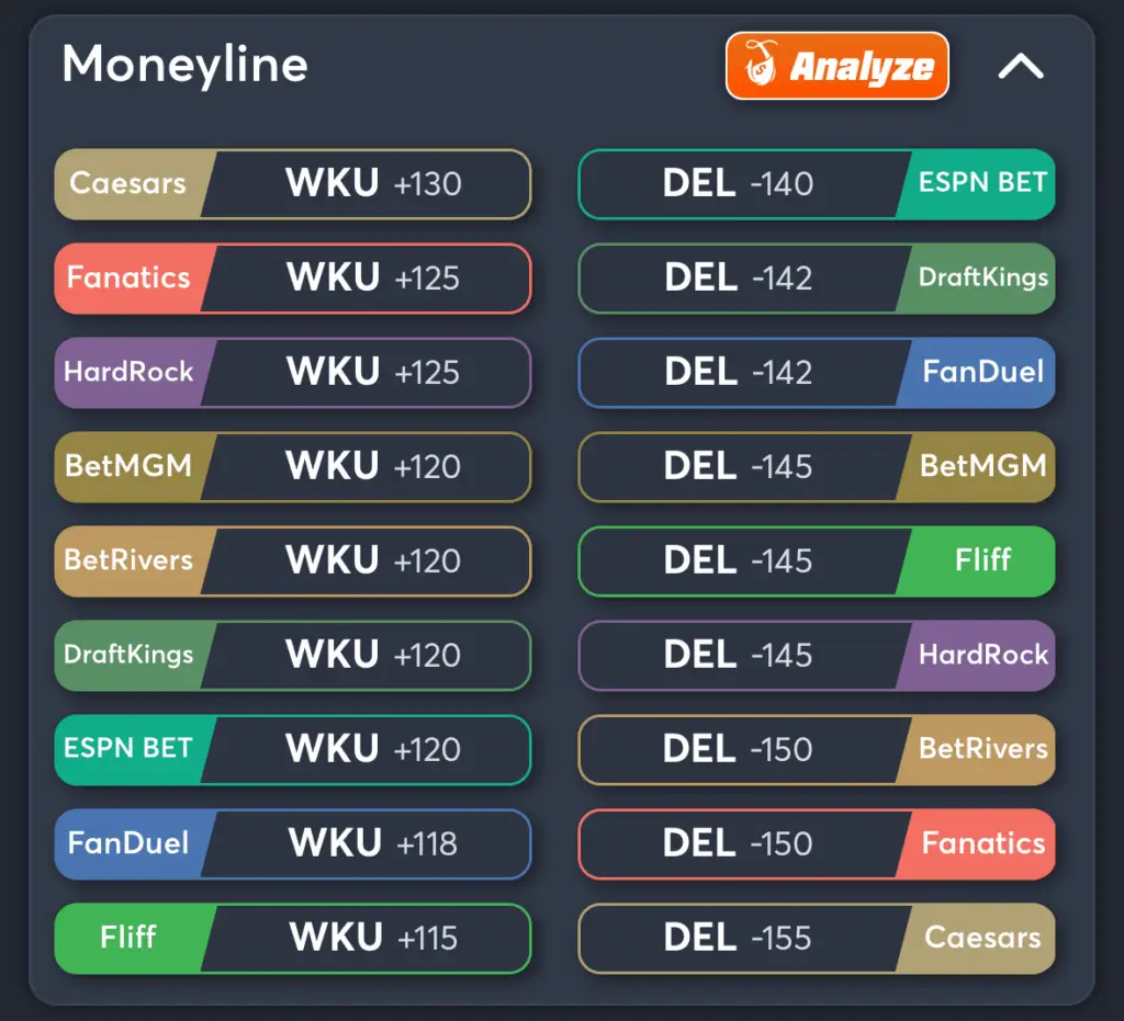 Finding the WKU vs Delaware best odds ensures bettors maximize value.